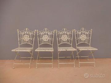 salottino in stile liberty colore crema anticato composto da 1 tavolo diametro 100 e 4 sedie Sia il tavolo che le sedie sono pieghevoli