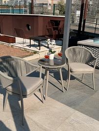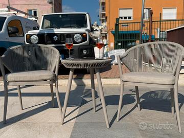 Coppia di sedie e tavolino da esterno Re garden Poltrona H. 82 × L. 60 x P. 60 cm Tavolino H. 62 x Ø 51 cm Mai usato