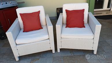 Salotto da esterno bianco completo di cuscini sfoderabili impermeabili. Molto resistente. Un divano 3 posti + 2 poltrone e 1 tavolino. NO SPEDIZIONE