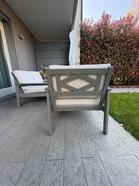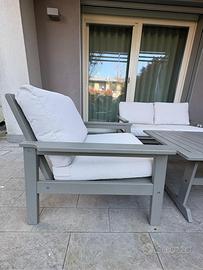 Vendo salottino da esterno IKEA Bondholmen color verde salvia composto da: •divano •poltrona •tavolino Inclusi cuscini originali. Usato poco, sempre tenuto con cura; unici segni presenti sul tavolino (vd foto) Struttura in legno solida e resistente, perfetto per giardino, terrazzo o balcone. Prezzo dal sito, facilmente verificabile (solo per divano e poltrona, escluso tavolino) 450€ Ritiro a mano