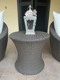 Vendo elegabte salotto da giardino/veranda in rattan sintetico. Composto da due poltrone e un tavolino, usato ma in ottime condizioni. Nessun danno strutturale.