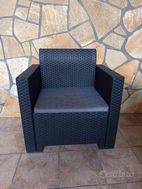Salotto da giardino in rattan. 1 sofà 2 posti + 2 poltrone + 1 tavolino.