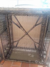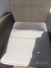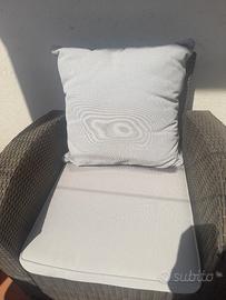 Vendo salotto da giardino o balcone,in rattan ,robusto con cuscini antipioggia ed antimacchia ed ancora robusti( purtroppo i cuscini sono sbiaditi dal sole,come si vede sulle foto,non in modo uniorme).Acquistati 4 anni fa, pagato 600€. Vendo a 300€. No spedizione. Sono sempre stati sul balcone.