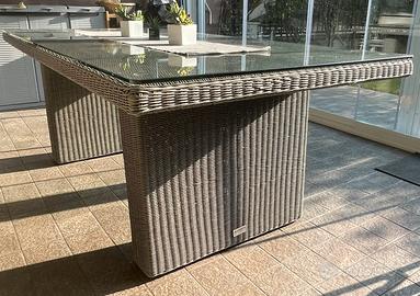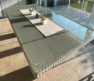 Vendo salotto da giardino 2 poltrone e 1 divano a due posti completo di tavolono con piano in vetro + tavolo da pranzo con piano in vetro. (No sedie).