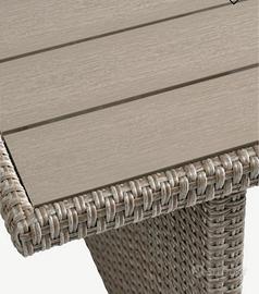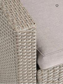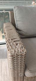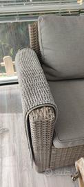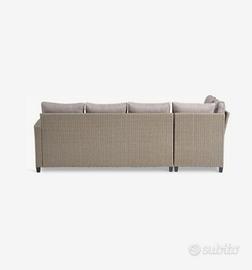 Salotto da giardino 6 posti completo di tavolo, modello (AGERMOSE) in vendita da Jysk a 649 euro, colore naturale, misure circa cm. 170x230, un bracciolo danneggiato come da foto quindi recuperato con copertura sempre visibile in foto. Trasporto e ritiro a carico acquirente.