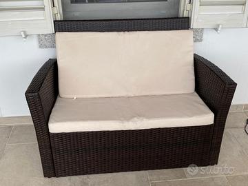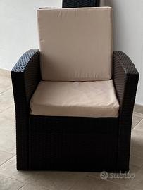 Vendesi salotto giardino in ratton in buone condizoni costituito da: divano 2 sedue, 2 poltrone e un tavolino con il piano in vetro. Il ritiro è a San Teodoro e non si spedisce