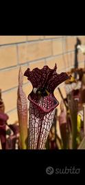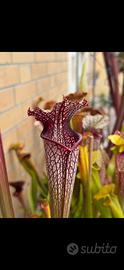 Sarracenia x “LombardiG” un incrodio davvero mozzafiato, che in autunno diventa scurissima, facendo un favoloso contrastro tra il chiaro e lo scuro dell’ascidio. Taglia M/L spedizione a radice nuda o su rinchiesta in vaso.