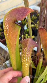 Sarracenia minor var. okefenokeensis "Giant" M18 MK una pianta carnivora che riesce a raggiungere notevoli dimensioni, anche un mt di altezza (vedere foto 1) Taglie disponibili: M 15€ x 2 XXL 40€ CONTATTAMI PRIMA DI PROCEDERE ALL’ACQUISTO DICENDOMI IL RIZOMA CHE PREFERISCI Spedizione veloce e imballaggio accurato a radice nuda o su richiesta in vaso. Consegna a mano nei pressi di Macerata.