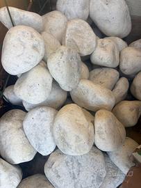 Vendo sassi marmo di Carrara. 4 vasi pesati da 20kg (50pezzi a vaso =200pezzi). Sassi grandi vedi foto. (0,15 cent a sasso)