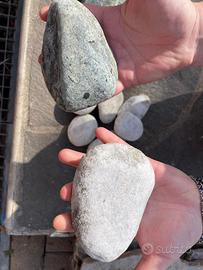 Vendo sassi di fiume, disponibili in tre colorazioni, taglia medio grande. Della colorazione scura disponibili anche in misura grande. Prezzo 10€ per un secchio di circa 25kg.