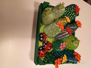 Sassi decorati e dipinti a mano, smaltati,tema piantine succulente vendo ad 1 euro l'uno richiesta minima 4 pezzi, contenitore non incluso