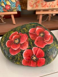 Sasso dipinto a mano: i papaveri rossi. Pezzo unico. Artista siciliana. Idea regalo.