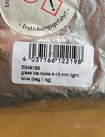 Sassolini azzurri effetto ghiaccio di dimensioni varie tra i 4 e i 10mm.