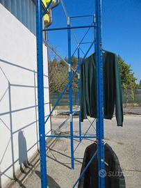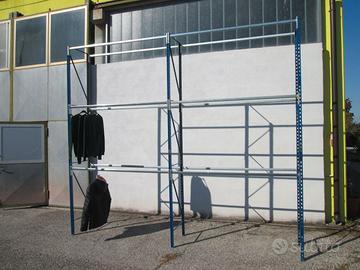 Vendo scaffalatura per appendere abiti dalle misure :altezza 3,25 larghezza 3,72 (con due campate come in foto)profondità 60cm, da fissare al pavimento. Disponibili 6 unità come nella foto Prezzo scritto per unità come in foto.