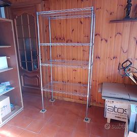 I pezzi che dispongo sono quelli che compongono la struttura visibile in foto ma può essere montata a vostro piacimento acquistando altri pezzi per ampliarlo in altezza o in larghezza con numerosi componenti tutti diversi tra loro quali spondine o ripiani anche in vetro i pezzi si posso trovare alla Brico o LeroyMarlin.