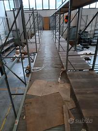 Vendo scaffalatura portapallet con passerella centrale per poter sfruttare il piano superiore. I ripiani lunghi 180 cm sono regolabili, e ne sono compresi 3 per scaffale, in foto è già parzialmente smontata. in totale sono 19 campate, 10 da un lato e 9 dal lato scala, ingombro lunghezza totale 18 metri, larghezza 3 metri Per maggiori dettagli contattatemi pure, importo + iva.