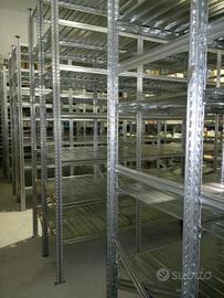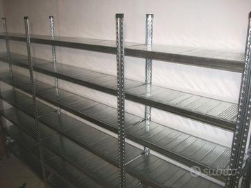 - 16 Ripiani completi di correnti Lunghezza 150 cm Profondità 60 cm portata 145 kg a ripiano .