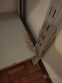 Vendo scaffalatura in metallo con montanti rinforzati. Lo stato di conservazione generale è buono. Sono presenti normali segni del suo vissuto. Misure: 1,02 x 40,5cm. H 2,05mt. Prezzo: 40€