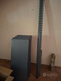 Scaffallatura componibile completa di montanti . prezzo da valutare in base a quantità di scaffali acquistata - scaffali disponibili misura 100*40 oppure 120*40 - montanti altezza circa 250 - ancora alcuni disponibili altezza 180/200