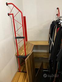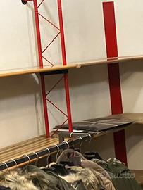 Vendo scaffali negozio di abbigliamento in ferro verniciato e legno come nuova. Lunghezza 11 metri. Ogni scaffale ha 4 ripiani o 3 con appenderia.