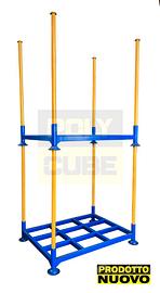 Scaffalature mobili in acciaio verniciato con 4 montanti. Sono smontabili, semplici da espandere e da movimentare con transpallet o carrello elevatore, sono facilmente accatastabili grazie al sistema a bicchiere rovesciato. La struttura e la base sono in tubolare d’acciaio sezione quadra mm60x40, i montanti in tubolare sezione rotonda diametro 50mm. Sono utilizzate come scaffalature mobili per pneumatici e pallet per lo stoccaggio di scatole, rotoli o tubolari di ogni tipo