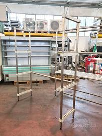 scaffalature per celle macelleria usate, si tratta di due scaffalature con elevata portata in acciaio inox adatte per il stoccaggio di materiali pesanti.