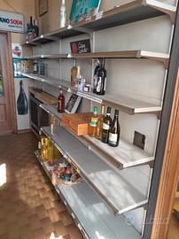Per cessata attività si vendono scaffalature da esposizione per negozi o rivenditori, diverse metrature, carico o smontaggio e ritiro in sede, no spedizione, il materiale si trova in provincia di Torino.