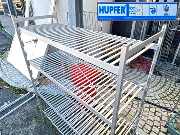 scaffale Hupfer in alluminio usato, si tratta di una scaffalatura a quattro ripiani in alluminio adatta per lo stoccaggio di: alimenti, utensili, attrezzature da cucina, etc. dimensioni: 160X60cm h195cm