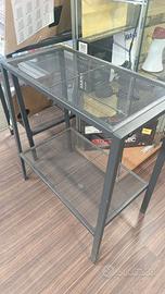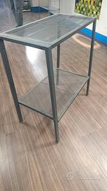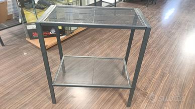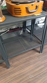Scaffale in metallo 2 ripiani – stile industriale Vendo scaffale a 2 piani fissi in metallo verniciato grigio antracite, con ripiani a rete metallica. Dimensioni: Larghezza: 60 cm Altezza: 70 cm Profondità: 30 cm Struttura robusta e stabile, ideale come tavolino porta TV, scaffale ingresso, supporto per oggetti in salotto o ufficio. Stile industriale molto versatile. Condizioni: usato, buone condizioni.