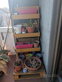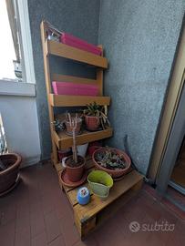 Vendo scaffale/portapiante realizzato a mano in legno, pezzo unico e molto solido. Grazie alla base profonda, la struttura è estremamente stabile e non necessita di essere fissata al muro.