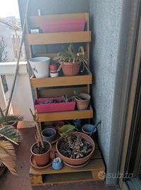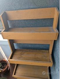 Vendo scaffale/portapiante realizzato a mano in legno, pezzo unico e molto solido. Grazie alla base profonda, la struttura è estremamente stabile e non necessita di essere fissata al muro. Dimensioni totali: Altezza: 130 cm Larghezza: 60 cm Profondità alla base: 77 cm Dettaglio Ripiani (profondità utile): Lo scaffale dispone di 3 ripiani a scalare, ideali per diverse tipologie di piante: Ripiano inferiore: 28 cm (perfetto per vasi grandi e pesanti) Ripiano centrale: 22,5 cm Ripiano superiore: 17,5 cm (ideale per piantine grasse o aromatiche) Stato dell'oggetto: Struttura molto robusta. Segnalo segni di usura dovuti all'umidità sulla base (visibili in foto), facilmente ripristinabili con una passata di carta vetrata o da lasciare così per un look vintage "vissuto". Solo consegna a mano Corsico MI