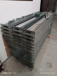 Disponibili 7 montanti 2.7 m x 1 m e 42 traverse lunghezza 1.8 m altezza 10 cm (N 28) e altezza 14 cm (N 14). Prezzo da concordare in funzione dei pezzi presi.