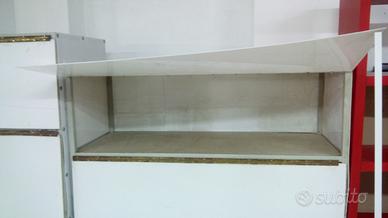 telaio in tubolare di ferro 3x3 cm - ripiano con angolare in ferro 3x3 cm - ripiano in legno MDF da 2 cm rivestimento di tutti i lati con pannelli di plexiglass opalino bianco da 3 mm