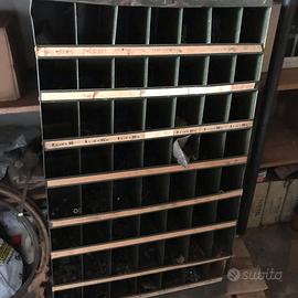 Scaffali in Ferro e Legno per minuteria Ferro : 13 x 60 x 2 MT.Alto con 105 Caselle Ferro : 20 x 60 x 2 MT.Alto con 50/60 Caselle Regolabili in Larghezza Legno : 19 x 52 x 86 Cm Alto, con 33 Cassetti 13,5 x 15,8 x 6,