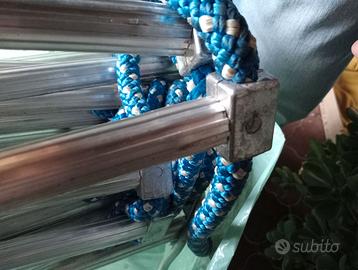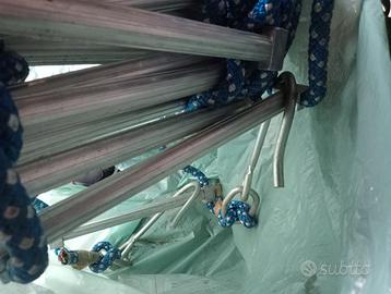 Come da foto, scala a pioli in alluminio massiccio e corda nautica, munita di ganci.