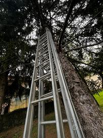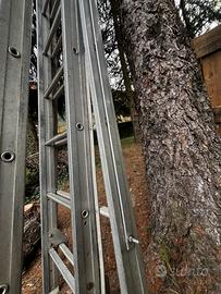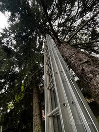 Vendo causa inutilizzo scala professionale,a 3 elementi utilizzabile a cavalletto e in appoggio con terzo elemento estraibile per uso singolo altezza di lavoro utile 4.10 metri a cavalletto e 11,50 metri in appoggio. Tenuta bene e priva di rotture . Disponibile eventualmente per consegna nel raggio di 20 km .