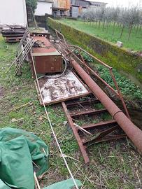 Scala di ferro per raggiungere l'altezza di 4 oppure 5 metri circa Euro 300 Macchina da imballaggio parzialmente smontata e vario materiale in ferro di recupero con alcuni motori elettrici contenenti rame - prezzo da concordare e non meno di Euro 500 Possibilità di vendere con fattura con iva esposta e in questo caso deve essere fatto il formulario rifiuti.