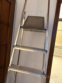 Scala FRAMAR 7 gradini in alluminio antiscivolo, leggera e resistente Dimensioni: cm.215 x 53 x 9 Materiale: alluminio Marchio: FRAMAR Colore: alluminio/blu
