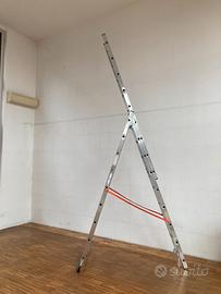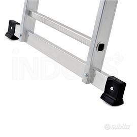 Gierre Modula AL415, è una scala tripla trasformabile in alluminio estremamente versatile ed ideale per una vasta gamma di lavorazioni; i montanti in alluminio zigrinati sono uniti da delle robuste articolazioni in acciaio. Può essere usata tutta estesa, doppia, a sbalzo oppure in posizione zoppa.