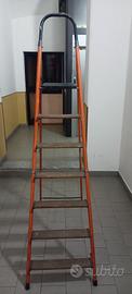 Scala a 7 gradini,struttura in ferro e gradini ferro + legno,solida e robusta,con 2 catene di sicurezza.
