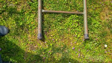 Scala in ferro, nove gradini (pioli), con piedini in gomma antiscivolo ad entrambi i lati. Altezza 3 metri, larghezza 50 centimetri.