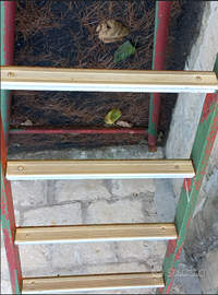 Solida scala in ferro ideale per soppalchi o per altri usi in cui occorre una base solida ad una certa altezza. Idonea anche per stare all’esterno. La misura di ingombro della base è m. 1,17 x 1,80, l’altezza alla pedana è di metri 2,00 mentre l’altezza al bracciolo passamano laterale della pedana è di metri 2,70. La scala è dotata di 11 gradini, compresa la pedana, larghi 42 cm. e distanti 19 cm., e di 2 passamano laterali ai gradini e alla pedana. I 4 piedi della base sono predisposti per essere fissati a terra oppure per il montaggio di ruote in modo da poter spostare facilmente la scala nel punto in cui serve e poi rimuoverla facilmente. La scala è in ottime condizioni: necessita solo di una riverniciatura e ritorna come nuova. Il suo valore è molto superiore al prezzo richiesto che si intende già come “prezzo-affare” non trattabile. Si vende per mancato utilizzo. Ritiro a carico dell’acquirente sul posto. Preferisco che mi chiamate al tel. 330794810 se siete veramente interessati.
