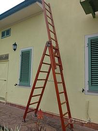 bellissima scala in legno allungabile di 3 pezzi in ottimo stato, chiusa misura 2,5 metri completamente allungata 6,25 metri, si può usare anche a scaleo allungabile,molto sicura.