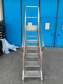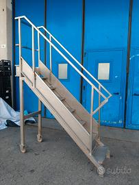 Vendo scala a palchetto in acciaio inox, ideale per uso industriale, magazzini, scaffalature, archivi o celle frigoriferescala con 7 gradini con texture antiscivolo e ruote per spostarla nella parte anteriore. altezza da terra a scalino più alto: 140 cm altezza complessiva(parapetto): 240 larghezza: 56 cm profondità: 156 cm la struttura è saldata, non è pieghevole.