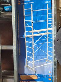 Altezza ultimo pianale 3,6m, quindi la lavorabilità con persona sopra e di quasi 6m. Totalmente in Alluminio e completo di 2 pianali, 2 assi con 4 ruote bloccanti e possibilità di inserire bilancieri.