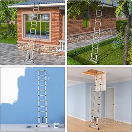 Scala Telescopica 3,8 m Scala Telescopica in Alluminio, con Barra Stabilizzatrice e Ganci Staccabili, Scala Pieghevole Portatile Adatto per riparazioni domestiche, 13 Gradino, Carico 150 KG