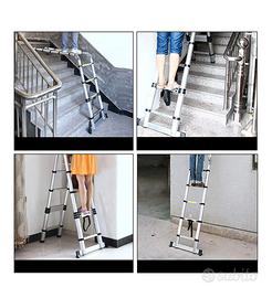 Vendo scala telescopica pieghevole in alluminio FP-TECH, altezza massima 4,4 metri, portata 150 kg, certificata CE EN131.