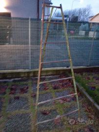 scala a tre piedi con sette gradini in ferro e in buone condizioni generali misura altezza 220 larghezza 110 profondità 120