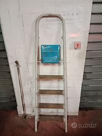 Vendo scala scaletta vintage per utilizzo domestico o per simpatica idea di arredo negozi locali giardino terrazzo balcone ecc. Struttura in alluminio e pedane in legno, perfettamente funzionante ed utilizzabile. Leggera, facilmente riponibile e facile da trasportare. Non accetto scambi ne offerte di perditempo. Visionabile per prova o ritiro in zona Tuscolana Arco di Travertino.