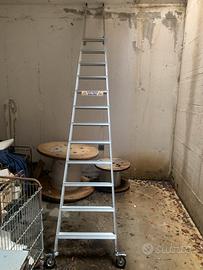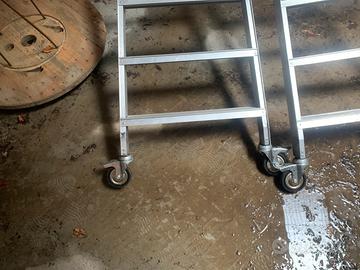 Scale in alluminio a 12 gradini mobile con carrello guida di testa e ruote con freno auto bloccante. Disponibili 4 !!!! Euro 250 cad.